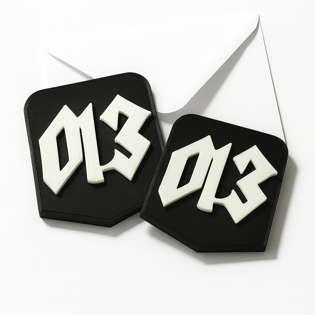 Custom 3D Printed Logo Sticker – Handmade Black/White Design – Personalized (max. 10 characters) – 5x6x0,5 cm
