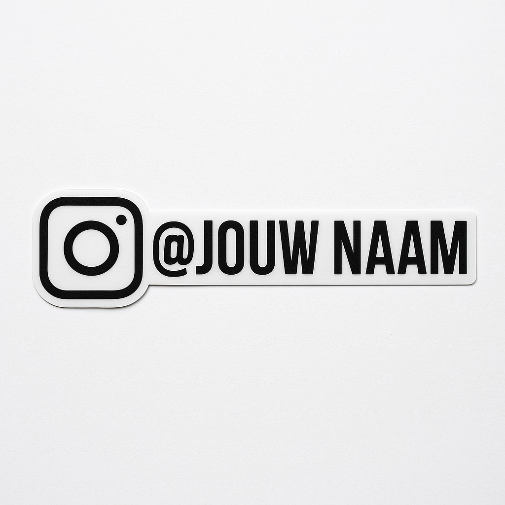 Instagram-naam sticker met logo – zwarte premium folie, weerbestendig & contour gesneden